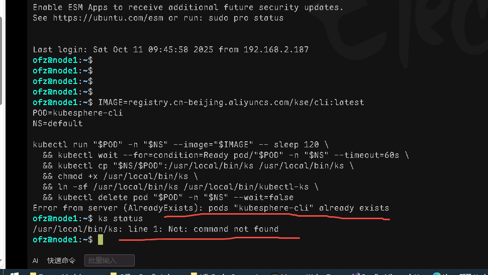 jasonhui 我删除了 pod,重新安装,前面增加了 sudo 还是提升 权限问题 error: open /usr/local/bin/ks: permission denied 是不是要切换一下账户什么的?现在用的是 root
