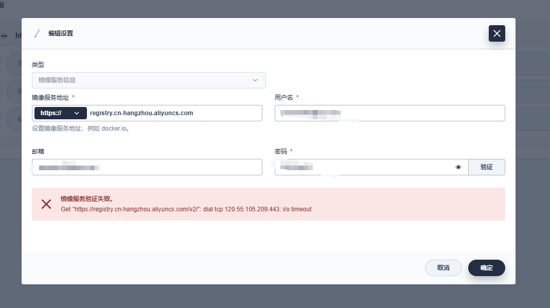 读取进项信息的时候读不出来,默认端口也没有返回,最后点确定之后,创建pod也失败,一直是提示拉取镜像失败