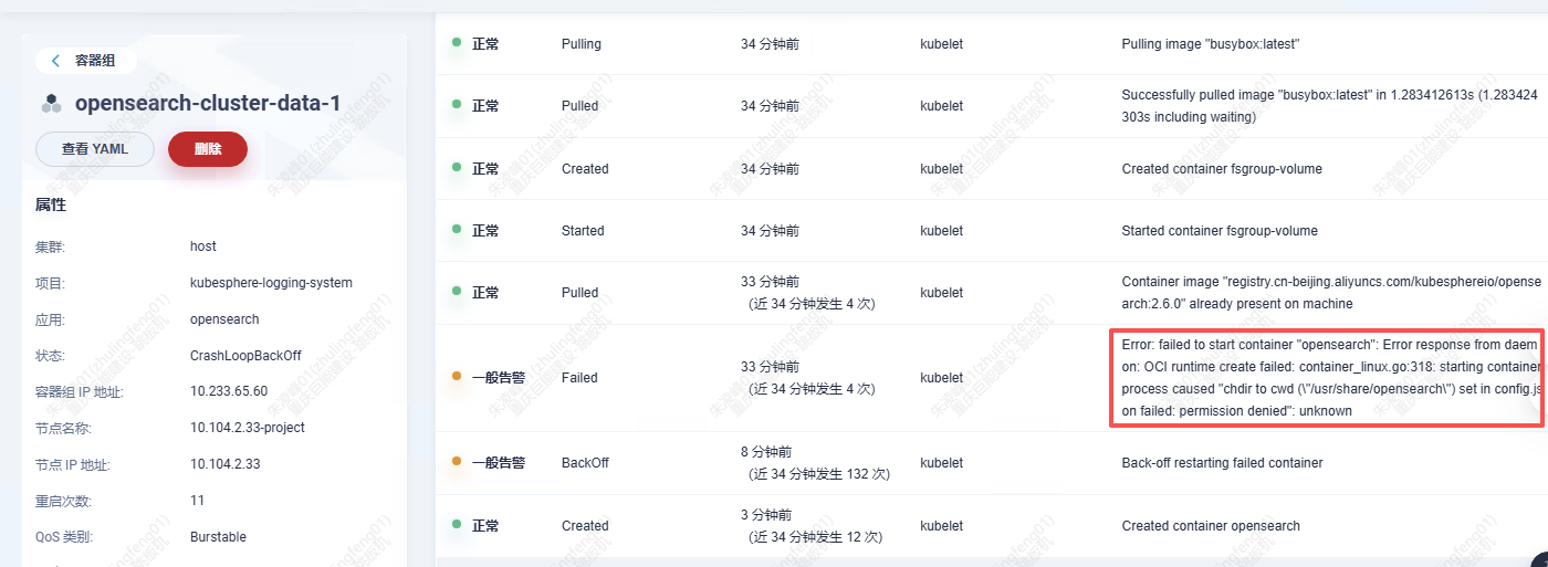 Error: failed to start container “opensearch”: Error response from daemon: OCI runtime create failed: container_linux.go:318: starting container process caused “chdir to cwd (\”/usr/share/opensearch\“) set in config.json failed: permission denied”: unknown