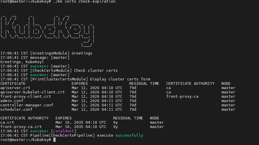 各位大佬好:我想问的问题是kubesphere集群如何进行证书管理?怎么确认会自动续期吗?